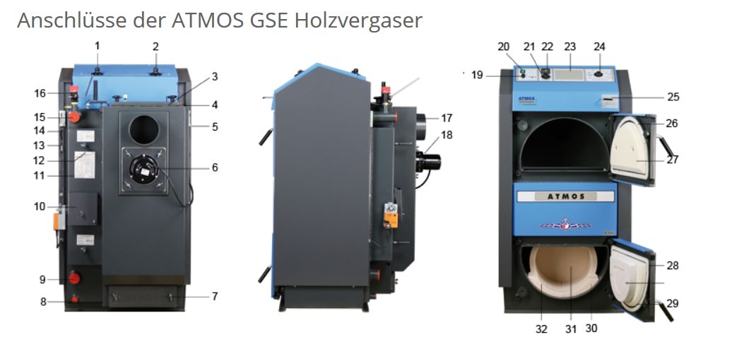 Atmos DC30GSE Holzvergaser 30 kW linke Ausführung