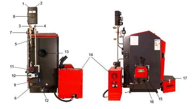 | 8. | Pumpengruppe für Heizkreis | 17. | Aschekasten |