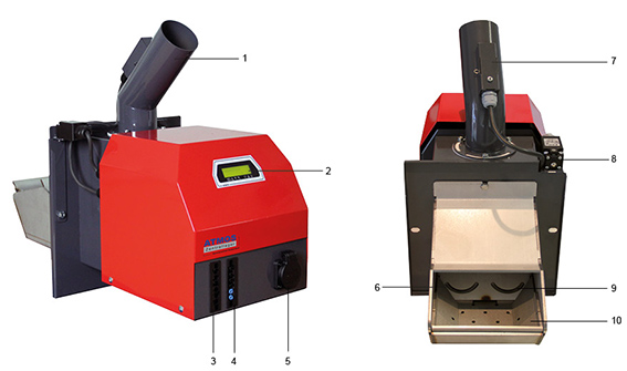 5. Steckdose für Förderschnecke 10. Brennerschale
